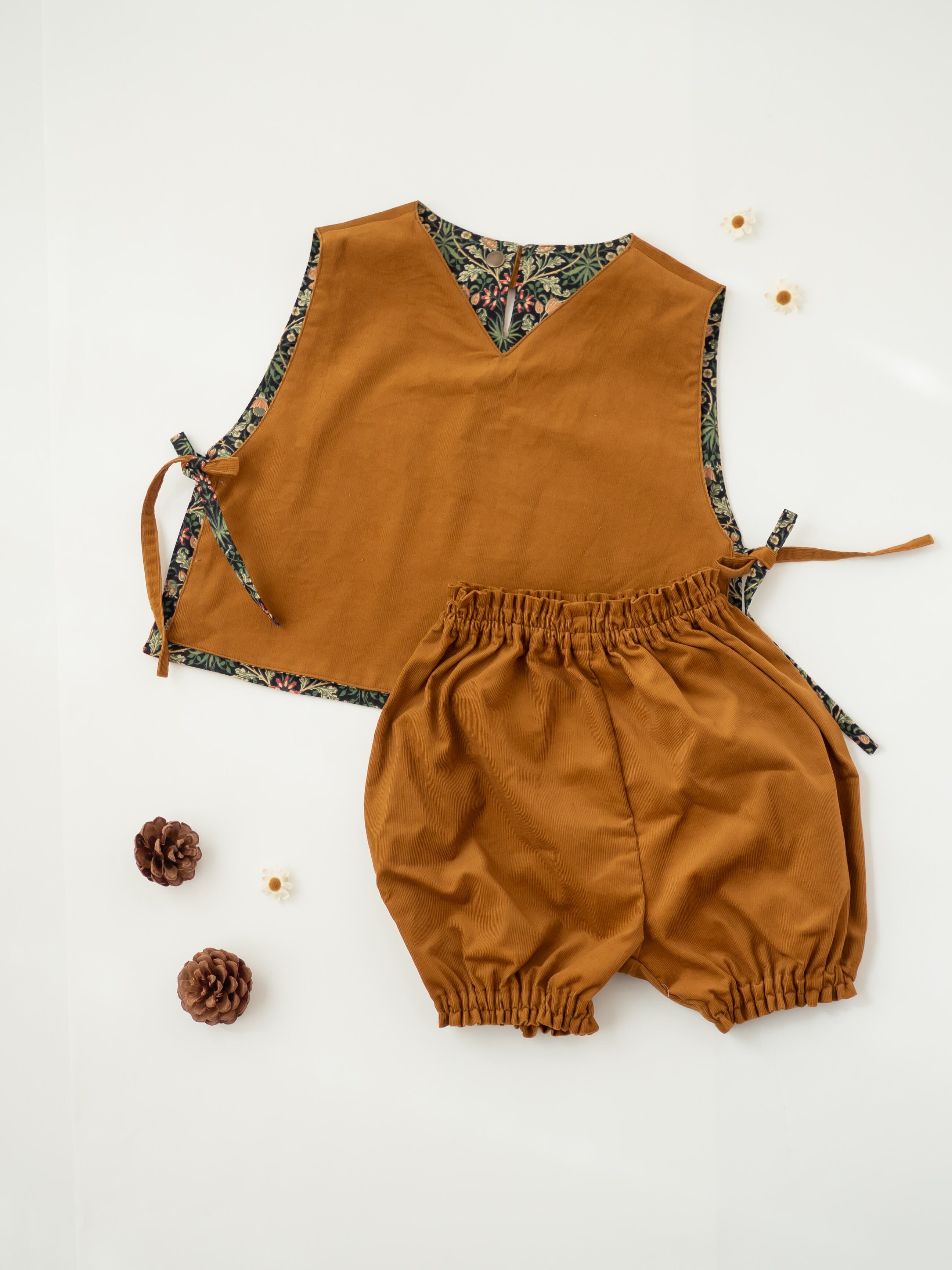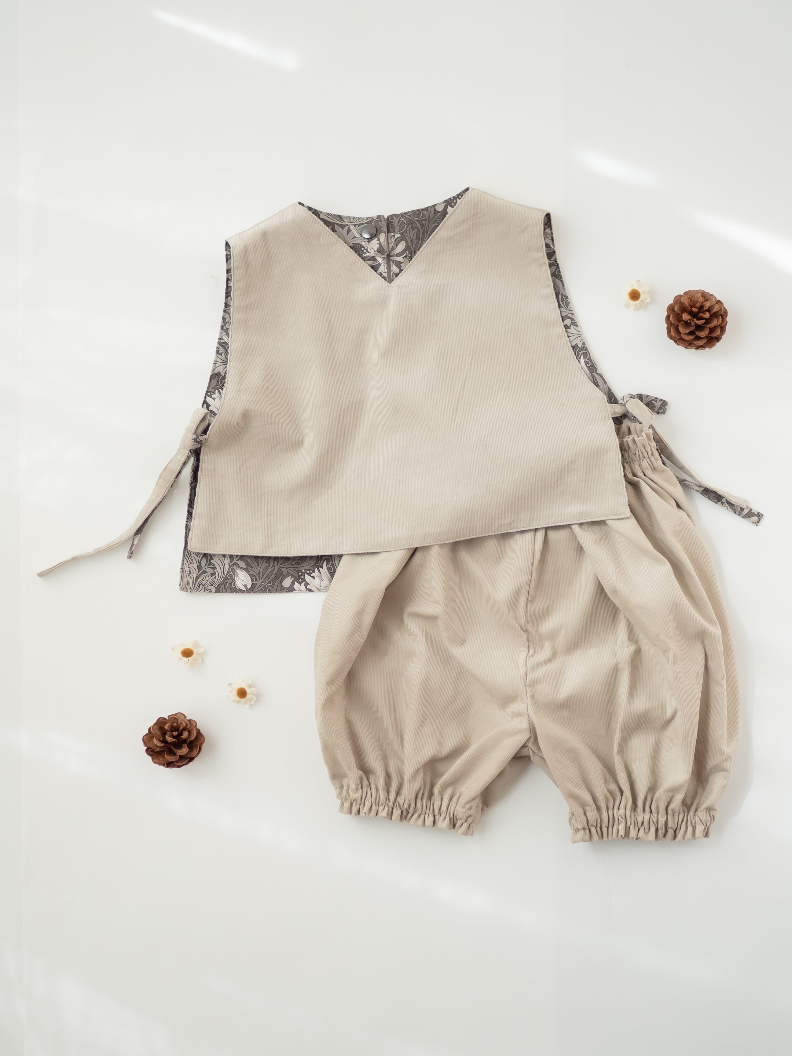 〔 森ラテぽわLier 〕コーデュロイのサイドリボンのリバーシブルベスト