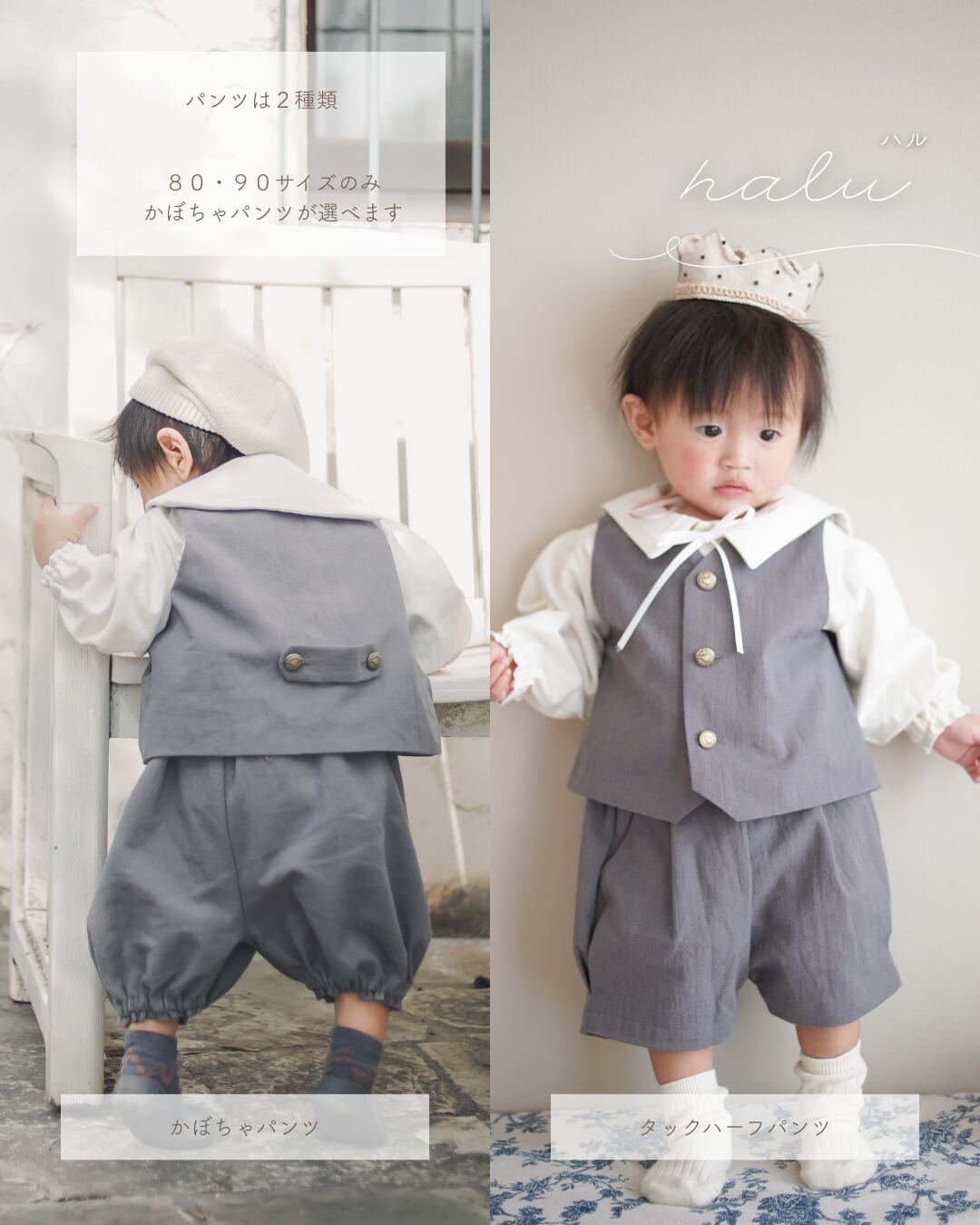 ◾︎ 赤ちゃんの動きやすさを考慮し、80・90のみかぼちゃパンツがお選びいただけます。(別ページにございます)